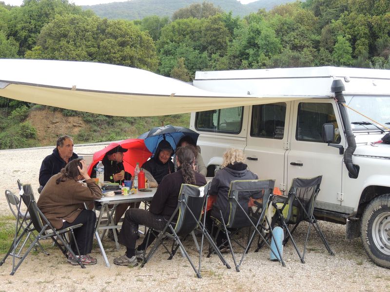 Nous repartons vers notre bivouac habituel près de Tortona où nous arrivons vers 15H ; le temps de monter la tente et le 5ème véhicule, le Land de JMarc et Isa qui viennent de la région de Toulouse, nous a rejoints.