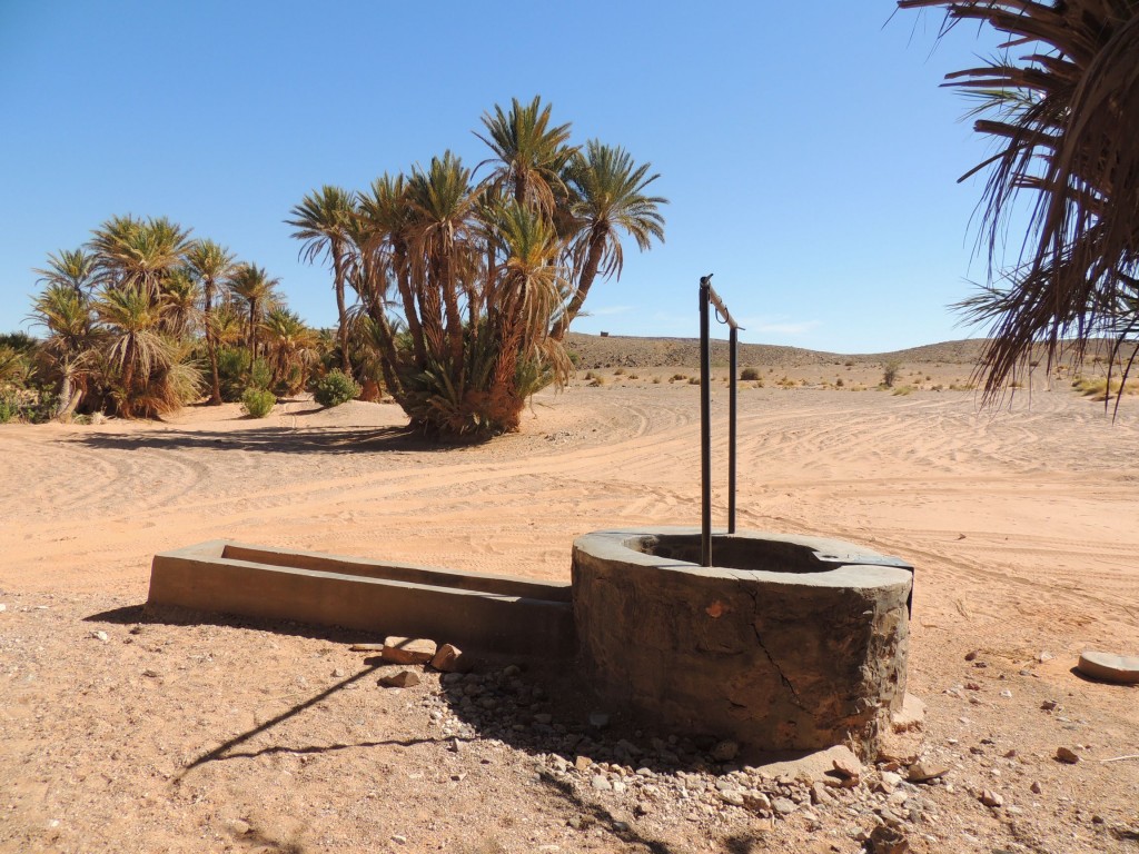 Le 12, toujours plein Sud en direction de l’erg Chebbi ( Merzuga) en suivant une large piste qui suit la frontière algérienne puis emprunte un oued avec des puits et des palmiers.