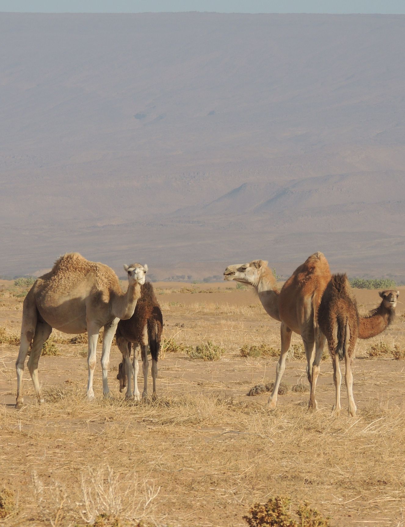 Le 11, nous poursuivons notre descente plein sud en longeant des oueds au pied de falaises ensablées. Partout des ânes , des chameaux et des chèvres en semi-liberté sous la surveillance très relâchée de gardiens de troupeaux, souvent très occupés par leur téléphone portable.
